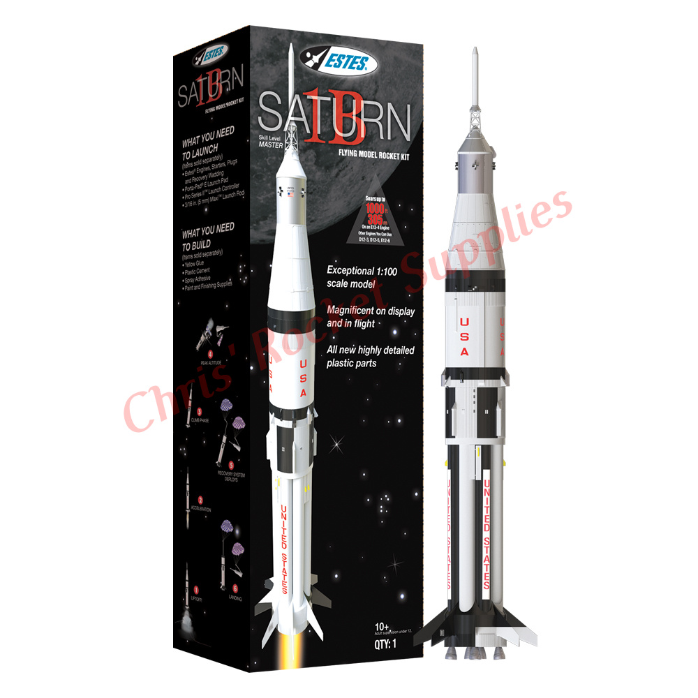 The Estes Saturn 1B SA-206 is a magnificent 1:100 scale replica of the Apollo spacecraft stack as it appeared during the launch of the first Skylab crew in 1973. This Master-Level kit features textured body wraps, injection molded components, and other plastic formed parts that add a level of realism that every scale modeler will appreciate. Complete with Launch Escape System, H-1 engine nozzles, and dual parachutes, the Estes Saturn 1B is easy to build and fly.
