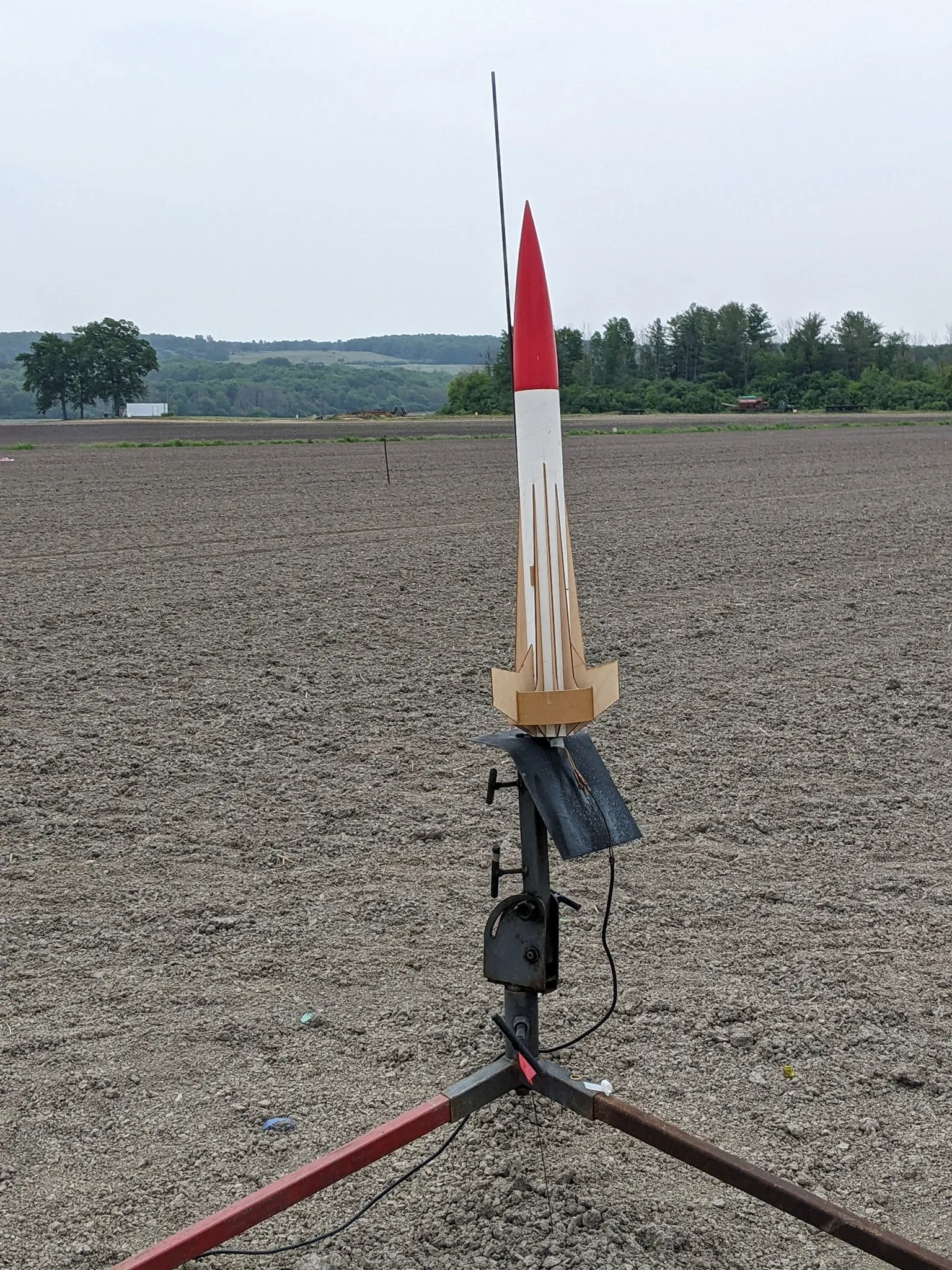 The rocket that became Radial Velocity was created some years ago and flown all over the northeast. After hearing people say “That’s cool!” and now having a kit company, it seemed a natural thing to continue expansion into higher power kits with a production version. Able to fly on higher power F motors and up (29mm), this 3″ rocket has three non-through wall fins, 9 long strakes, a ringed tail, and is a canvas for endless interesting paint scheme options. Manufactured of LOC components, laser cut bass and plywood fins with a TopFlight chute and flying on high thrust F and up motors, this rocket is anything but a 3-fins-and-a-nosecone bird!