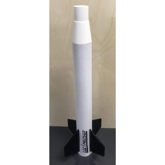 An add on component for 2-stage flight! 3" in diameter, 24" long airframe with a specially cut AR-3.00-2.14 on top and a 38mm motor tube. Comes with a 28" parachute and NW-12 for it's own recovery. Designed to work with YSHAWK238, YBBX238, YIRIS238, YIQSY238 and YZEUS238. You can choose to attach permanently or allow drag separation for 2 stage flight.