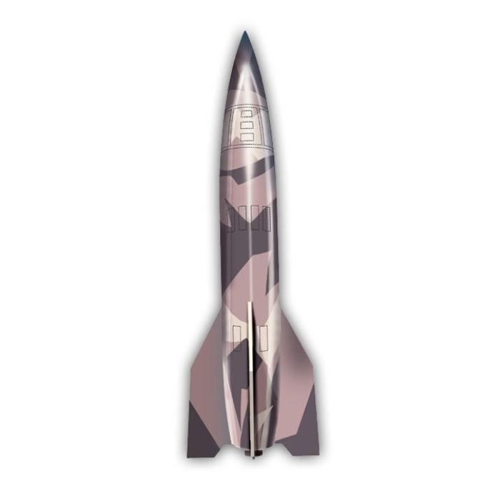 The 4" LOC V2 Rocket Kit is one of the ADVANCED SERIES of kits, which include factory pre-slotted airframe and through-the-wall fin construction, The 3.9 V2 is our sport scale version of the infamous WWII German V2 rocket. This boat tail kit comes standard with a 38mm motor mount but flies great on F50 and G motors using an optional MMA-2 adapter. The 3.9 V2 is a great performer on a variety of motor packages through Level 1 - For Level 2 motors and large Level 1 motors change the launch lugs to rail guides to eliminate rod whip due to its short height and wide motor mount location. Nose weight will be required.