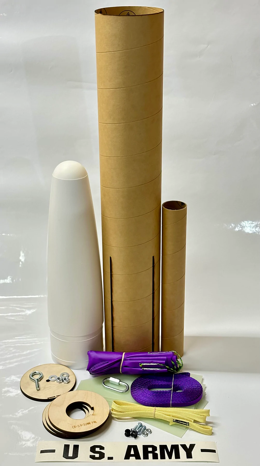 The STRIKER is a mean-looking kit for Level 1 and 2 flights. This rocket stands 36.5" tall, is 3.9" in diameter and has a 4 fin design. This rocket comes standard with a 38mm motor mount and can fly on H thru J motors. At ~52 oz., the 36" parachute is sized right for the stock kit to make a safe landing under most field conditions. This kit comes standard with our exclusive Linear Rail Lugs for use with 80/20 brand launch rails. The stock airframe is ideal for flights up to approx. 0.85 Mach.