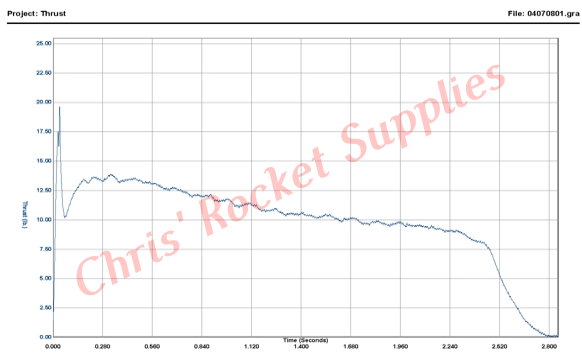 Propellant Weight | 62.5 g (2.20 oz) | Maximum Thrust | 112.7 N (25.34 lb) |