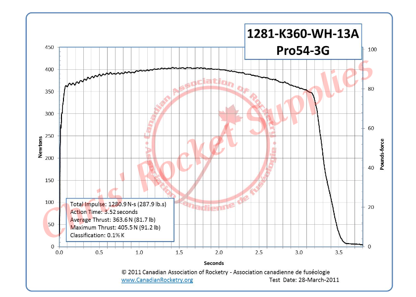 Loaded Weight | 1232 g | Total Impulse | 1280.9 Ns (287.9 lb-s) |