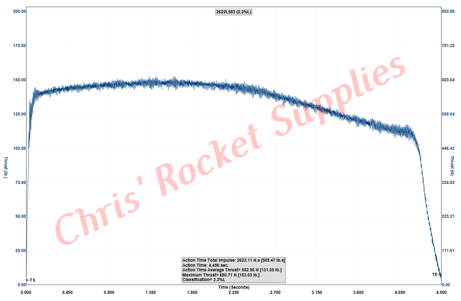 Burnout Weight | 1260.00 g (44.10 oz) | Avg Thrust | 583.80 N (131.35 lb) |