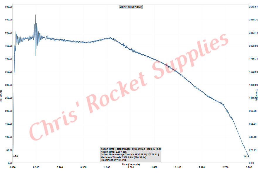 Loaded Weight | 6051.00 g (211.79 oz) | Total Impulse | 5069.30 Ns (1140.59 lb-s) |
