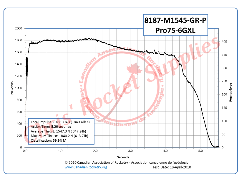 Propellant Weight | 4835 g | Maximum Thrust | 1840.2 N (413.7 lb) |