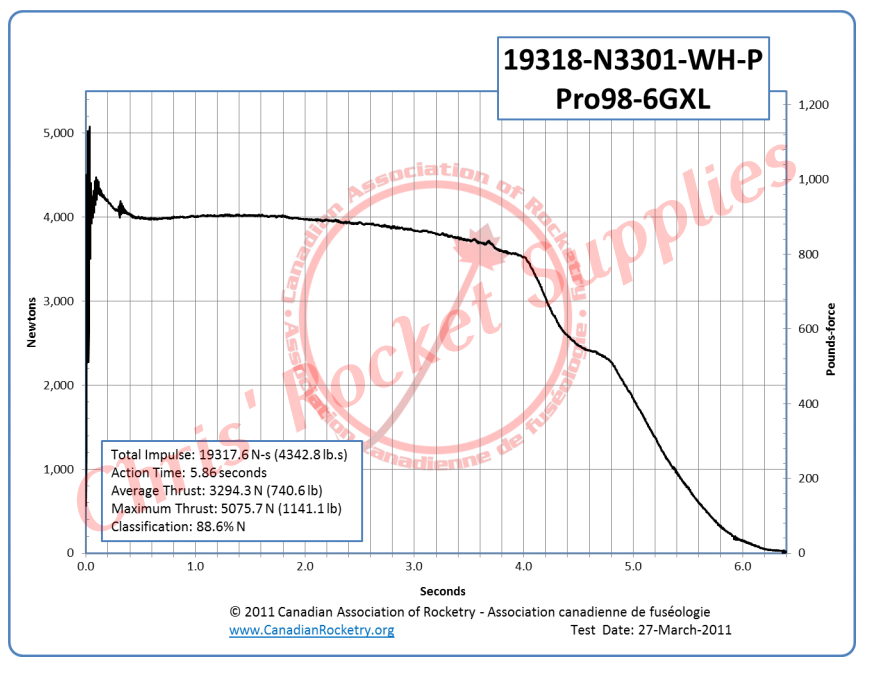 Loaded Weight | 16525 g | Total Impulse | 19317.6 Ns (4342.8 lb-s) |