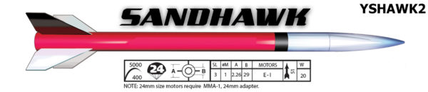 Choose between an advanced or performance series kit. 29mmt or 38mmt depending on filed and ability. The 29mmt is an advanced series kit, which feature factory pre-slotted airframe and through-the-wall fin construction, the Sandhawk is our sport scale version of the famous Sandhawk rocket The 29mm motor mount is perfect for F and G motors and the rugged airframe can take I power if you can handle it. Parachute Recovery. The 38mmt version is a performance series version and is great as a stand alone kit or ready to be married to the 3" Booster section for 2 stage flight.
