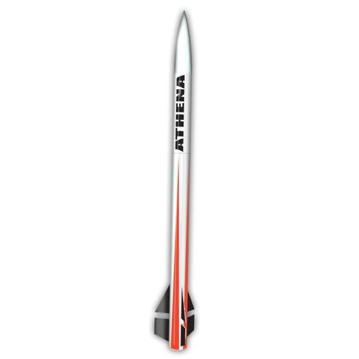PK-37 ATHENA Model Rocket Kit features LOC’s rugged pre-slotted airframe tube, precision cut plywood fins and rings, payload section, and rip-stop nylon parachute. This build-your-own rocket has a 29mm motor mount tube to take advantage of the new PRO 29 motors and makes an excellent L1 kit. Vinyl decal now included!