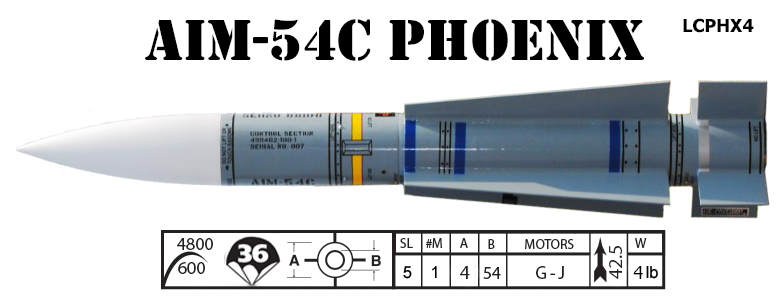 LOC 4" Phoenix - At 42.5″ tall, all the custom laser cut components are included in the box to build it strong and legit! Featuring factory pre-slotted airframe, through-the-wall fin construction and high power motor capabilities. The Phoenix is a fantastic jump into high power. This version sports a 38mm motor mount and will accept 29mm adapters (sold separately). Multi-Slot fins, decals, rail guides and recovery are standard. Can also fly on G-H motors. *Using larger motors MAY require the addition of nose weight! ALWAYS sim your specific build before flight!