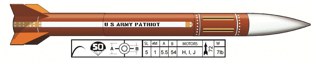 One of the ADVANCED SERIES of kits. Includes factory pre-slotted airframe and through-the-wall fin construction. The 5.5″ scale PATRIOT is one of our largest production kits. It includes a 54mm motor mount. This kit also sports 1/4″ CNC Machined fins, and 3/8″ centering rings and bulkheads for durability. Also included — 1000 series rail buttons and 1/2″ lugs, 50″ rip-stop nylon parachute, nomex chute protector, Z Clip motor retention, tubular nylon and all necessary hardware to keep it together!
