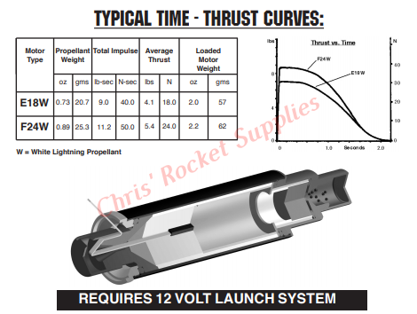 The AeroTech Reloadable Motor System RMS is an aluminum cased reusable motor in kit form that is assembled by the user. You will need AeroTech RMS-24/40 motor hardware to build and complete the motor for many reliable flights. Motor hardware is available separately in a complete set, and also as individual parts. Important: Mid Power RMS reload kits are not compatible with High Power RMS products. This RMS motor reload utilizes RCSs exclusive White Lightning™ aerospace grade composite propellant formulation, which produces a gorgeous bright white flame with lots of dense white smoke and a throaty roar at lift-off.