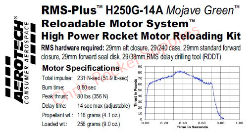 This RMS motor reload utilizes RCSs exclusive Mojave Green™ aerospace grade composite propellant formulation, which produces a brilliant green exhaust plume with a moderate amount of smoke. Mojave Green™ motors high density and specific impulse delivers a higher total impulse in each motor size than any other AeroTech propellant.