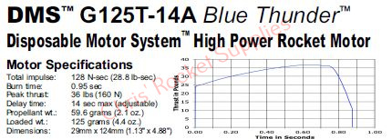 DMS motors feature a filament-wound fiberglass casing, a glass-reinforced composite phenolic nozzle, a molded plastic bulkhead and RCSs exclusive Blue Thunder™ aerospace grade composite propellant formulation, which produces a gorgeous bright violet-blue flame with a minimum of exhaust smoke. Blue Thunder™ motors provide a higher level of thrust than White Lightning™ motors of the same total impulse and are perfect for high lift-off acceleration.