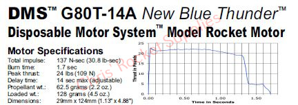 DMS motors feature a filament-wound fiberglass casing, a glass-reinforced composite phenolic nozzle, a molded plastic bulkhead and RCSs exclusive Blue Thunder™ aerospace grade composite propellant formulation, which produces a gorgeous bright violet-blue flame with a minimum of exhaust smoke. Blue Thunder™ motors provide a higher level of thrust than White Lightning™ motors of the same total impulse and are perfect for high lift-off acceleration.