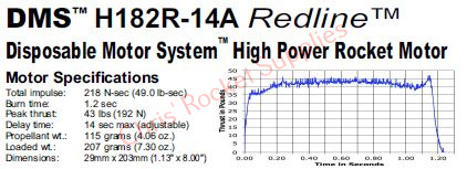 DMS motors feature a filament-wound fiberglass casing, a glass-reinforced composite phenolic nozzle, a molded plastic bulkhead and RCSs exclusive Redline™ aerospace grade composite propellant formulation, which produces a visible scarlet flame. Redline™ motors burning rate lies midway between that of White Lightning™ and Blue Thunder™. Photos don’t do justice to the “laser-beam” intensity and color of Redline™…. you have to see it to appreciate it!