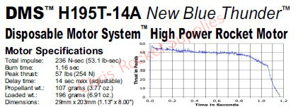 DMS motors feature a filament-wound fiberglass casing, a glass-reinforced composite phenolic nozzle, a molded plastic bulkhead and RCSs exclusive New Blue Thunder™ aerospace grade composite propellant formulation, which produces a beautiful intense blue exhaust jet studded with prominent “mach diamonds.” New Blue Thunder™ motors provide a higher level of thrust than White Lightning™ motors of the same total impulse and are perfect for high lift-off acceleration.