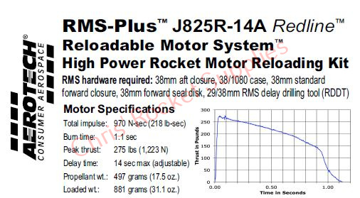 This RMS motor reload utilizes RCSs exclusive Redline™ aerospace grade composite propellant formulation, which produces a visible scarlet flame. Redline™ motors burning rate lies midway between that of White Lightning™ and Blue Thunder™. Photos don’t do justice to the “laser-beam” intensity and color of Redline™… you have to see it to appreciate it!