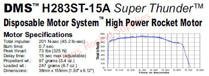DMS motors feature a filament-wound fiberglass casing, a glass-reinforced composite phenolic nozzle, a molded plastic bulkhead and RCSs exclusive Super Thunder™ aerospace grade composite propellant formulation, which produces a bright violet-blue flame with a minimum of exhaust smoke. Super Thunder™ motors provide a higher ISP than Blue Thunder™.