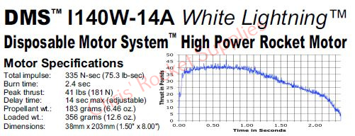 DMS motors feature a filament-wound fiberglass casing, a glass-reinforced composite phenolic nozzle, a molded plastic bulkhead and RCSs exclusive White Lightning™ aerospace grade composite propellant formulation, which produces a brilliant white flame with lots of dense white smoke and a throaty roar at lift-off.
