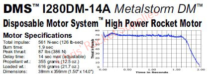 DMS motors feature a filament-wound fiberglass casing, a glass-reinforced composite phenolic nozzle, a molded plastic bulkhead and RCSs exclusive Dark Matter™ aerospace grade composite propellant formulation. Dark Matter™ is a sparky propellant, but unlike Metalstorm™ with its higher ISP and white smoke, Dark Matter™ is a black smoke sparky motor. As with all rocket motors using spark-generating propellants, special precautions must be taken to avoid fires around the launch pad by clearing the immediate area of all combustible materials in accordance with applicable fire and safety codes.