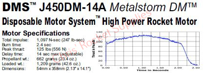DMS motors feature a filament-wound fiberglass casing, a glass-reinforced composite phenolic nozzle, a molded plastic bulkhead and RCSs exclusive Dark Matter™ aerospace grade composite propellant formulation. Dark Matter™ is a sparky propellant, but unlike Metalstorm™ with its higher ISP and white smoke, Dark Matter™ is a black smoke sparky motor. As with all rocket motors using spark-generating propellants, special precautions must be taken to avoid fires around the launch pad by clearing the immediate area of all combustible materials in accordance with applicable fire and safety codes.