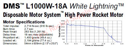 DMS motors feature a filament-wound fiberglass casing, a glass-reinforced composite phenolic nozzle, a molded plastic bulkhead and RCSs exclusive White Lightning™ aerospace grade composite propellant formulation, which produces a brilliant white flame with lots of dense white smoke and a throaty roar at lift-off.