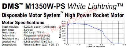 DMS motors feature a filament-wound fiberglass casing, a glass-reinforced composite phenolic nozzle, a machined aluminum bulkhead with a built-in 3/8-16 thread for a matching eye bolt and RCSs exclusive White Lightning™ aerospace grade composite propellant formulation, which produces a brilliant white flame with lots of dense white smoke and a throaty roar at lift-off.