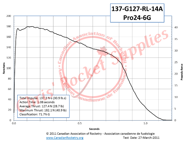 Propellant Weight | 70.5 g | Maximum Thrust | 182.1 N (40.9 lb) |