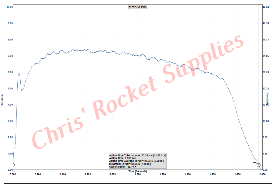 Loaded Weight | 102 g | Total Impulse | 55.5 N-s (12.5 lb.s) |