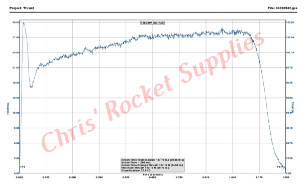 Propellant Weight | 75.00 g (2.63 oz) | Maximum Thrust | 128.70 N (28.96 lb) |