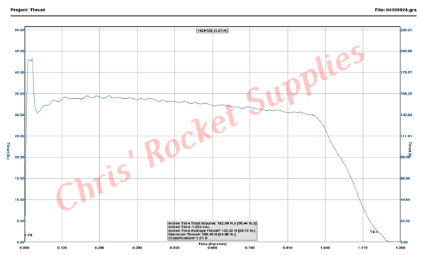 Burnout Weight | 105.00 g (3.68 oz) | Avg Thrust | 133.10 N (29.95 lb) |