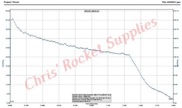 Propellant Weight | 128.50 g (4.50 oz) | Maximum Thrust | 247.80 N (55.76 lb) |