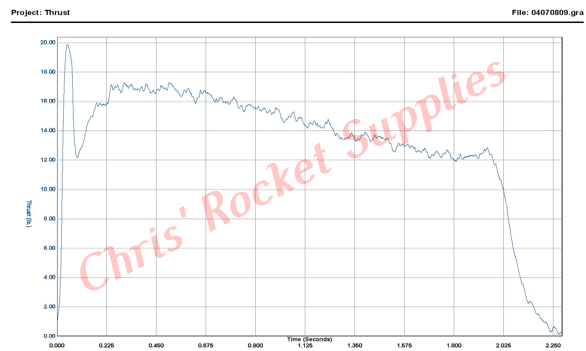 Brandname | Pro38 134G60-14A | Manufacturer | Cesaroni Technology | Man. Designation | 134G60-14A | CAR Designation | 134-G60-14A | Test Date | 7/4/2008 | | | Single-Use/Reload/Hybrid | Reloadable | Motor Dimensions mm | 38.00 x 127.00 mm (1.50 x 5.00 in) | Loaded Weight | 206 g (7.27 oz) | Total Impulse | 134.2 Ns (30.18 lb.s) | Propellant Weight | 68.3 g (2.41 oz) | Maximum Thrust | 87.8 N (19.74 lb) | Burnout Weight | 120.0 g (4.22 oz) | Avg Thrust | 60.3 N (13.55 lb) | Delays Tested | "14,11,9,7,5" | ISP | 200.4 s | Samples per second | 1000 | Burntime | 2.23 s | Notes | Red Lightning™ |