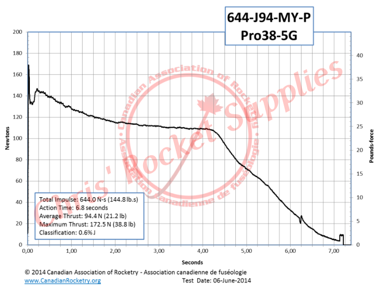 Loaded Weight | 660 g | Total Impulse | 644.0 N-s (144.8 lb.s) |