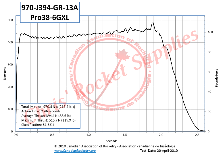 Burnout Weight | 351.8 g | Avg Thrust | 394.1 N (86.6 lb) |