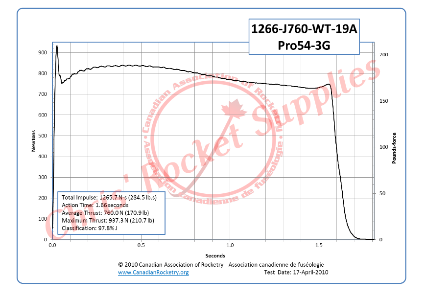 Loaded Weight | 1076.8 g | Total Impulse | 1265.7 Ns (284.5 lb.s) |