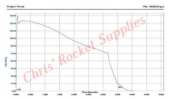Brandname | Pro54 1635K445-17A | Manufacturer | Cesaroni Technology | Man. Designation | 1635K445-17A | CAR Designation | 1635-K445-17A | Test Date | 12/3/2002 | | | Single-Use/Reload/Hybrid | Reloadable | Motor Dimensions mm | 54.00 x 404.00 mm (2.13 x 15.91 in) | Loaded Weight | 1398.00 g (48.93 oz) | Total Impulse | 1636.30 Ns (368.17 lb.s) | Propellant Weight | 792.00 g (27.72 oz) | Maximum Thrust | 664.83 N (149.59 lb) | Burnout Weight | 572.00 g (20.02 oz) | Avg Thrust | 445.00 N (100.13 lb) | Delays Tested | 25 - 6 secs | ISP | 210.70 s | Samples per second | 1000 | Burntime | 3.67 s | Notes | Classic™ |