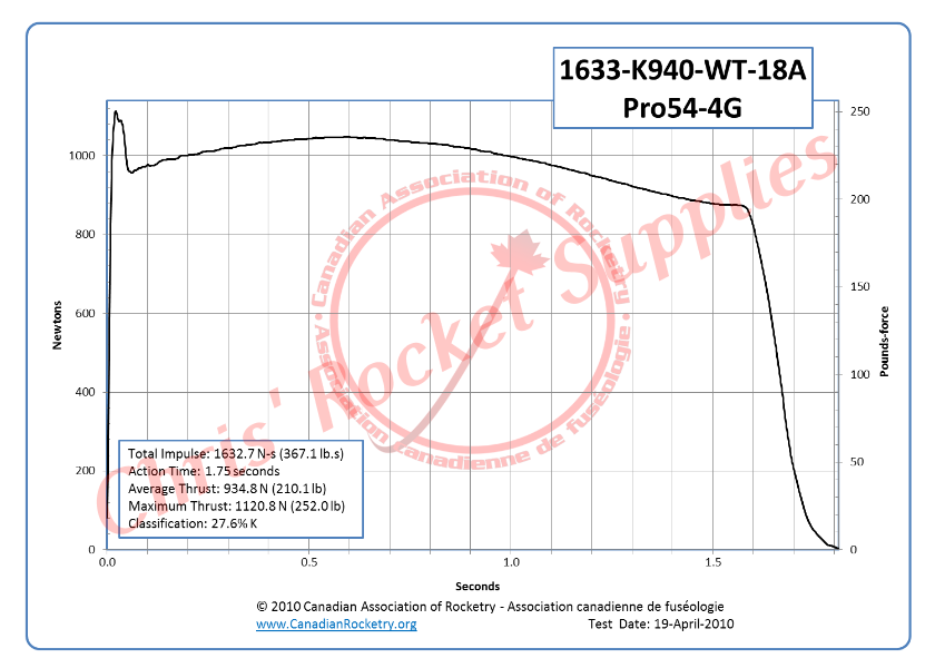 Propellant Weight | 768.0 g | Maximum Thrust | 1120.8 N (252.0 lb) |