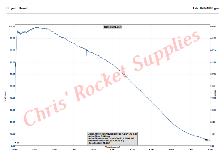 Loaded Weight | 2047.5 g | Total Impulse | 2285.1 Ns (513.7 lb-s) |