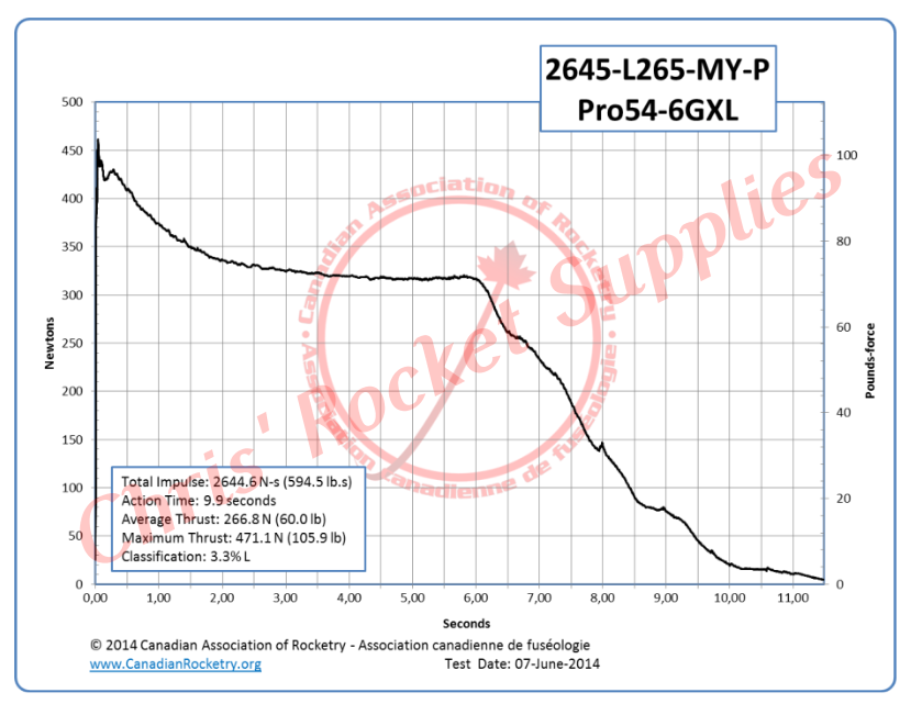 Loaded Weight | 2481 g | Total Impulse | 2644.6 N-s (594.5 lb.s) |