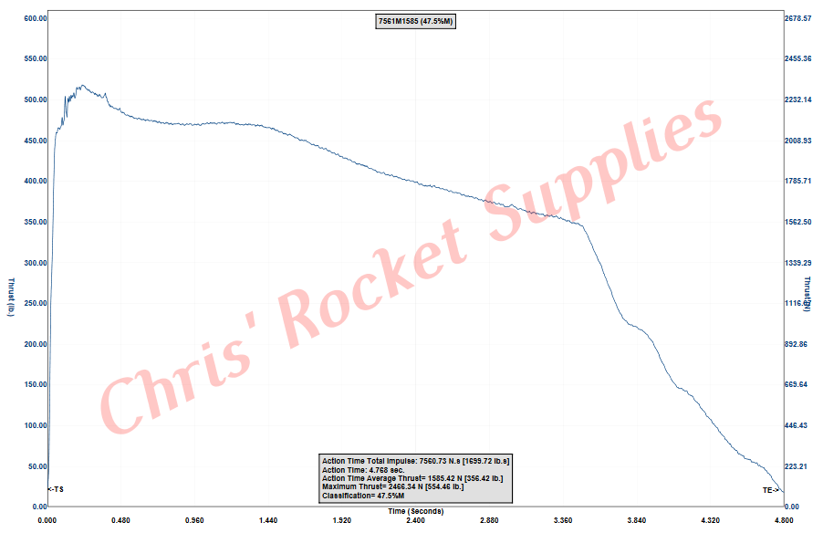 Loaded Weight | 6076 g | Total Impulse | 7544.6 Ns (1696.1 lb-s) |