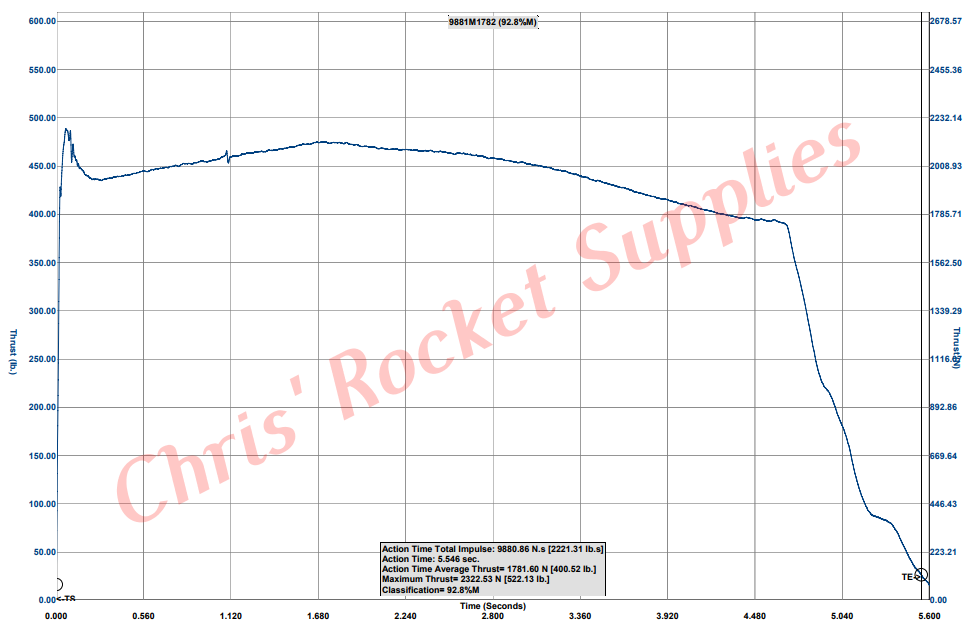 Loaded Weight | 8342 g | Total Impulse | 9869.7 Ns (2218.8 lb-s) |